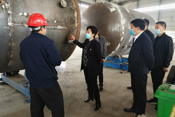 導讀:2020年4月2日上午(wǔ),嵩縣(xiàn)縣(xiàn)長宗玉紅、縣科工局局長,科長賈鬆(sōng)嶽及管委會馬站峰、於智斌等領導蒞臨河南創(chuàng)元環保科技(jì)有限(xiàn)公司調研複工複產、疫(yì)情防控及環保措(cuò)施落實情況。