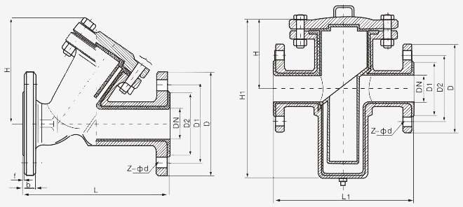 DN | NPS | L | L1 | D | D1 | D2 | f | b | Z-Фd | H | H1 |