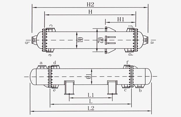 管口用(yòng)途:a:管程入口或出口、b:管程入口或出口、c:冷卻水入口、d:冷卻水出口、e:清洗排盡口、f:備用(yòng)口。